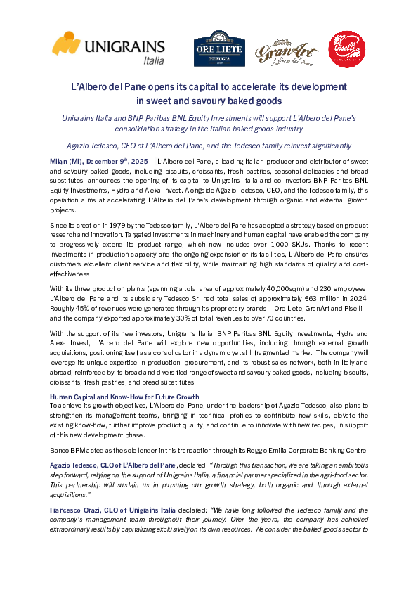 Creada y participada mayoritariamente por los productores de cereales franceses (AGPB y AGPM), Unigrains asocia a su capital los principales bancos franceses, como Crédit Agricole, BNP Paribas y Société Générale, así como diversas organizaciones francesas procedentes del mundo cooperativo agrícola.